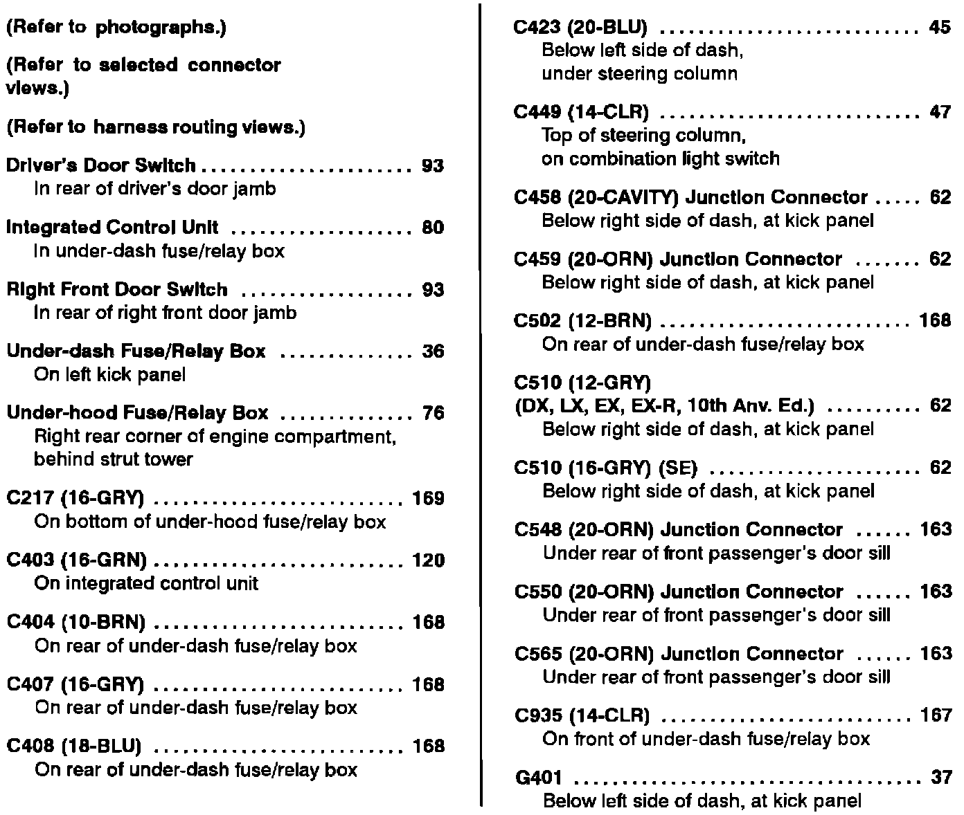 Component Location Index