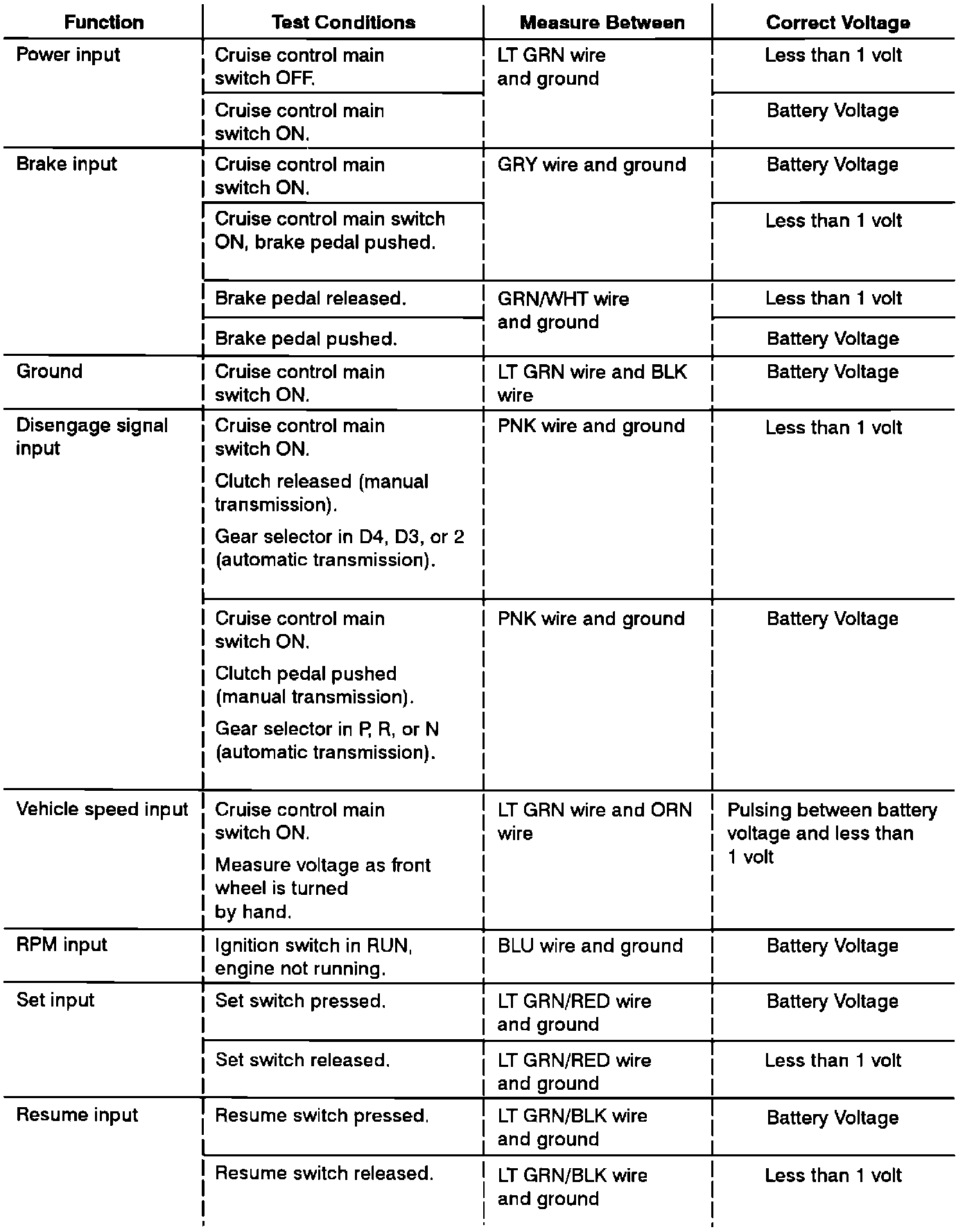Cruise Control: Troubleshooting:
