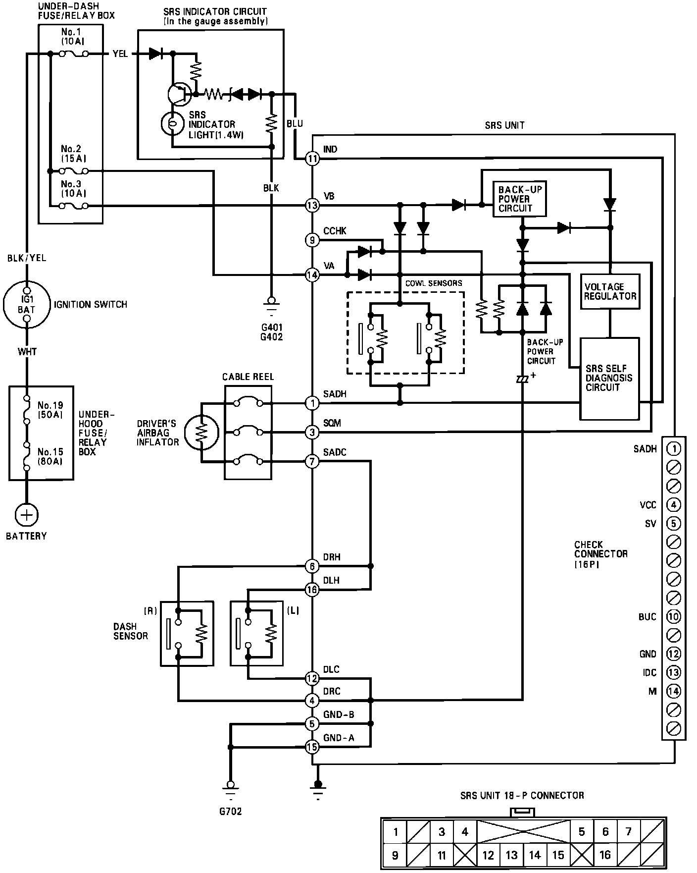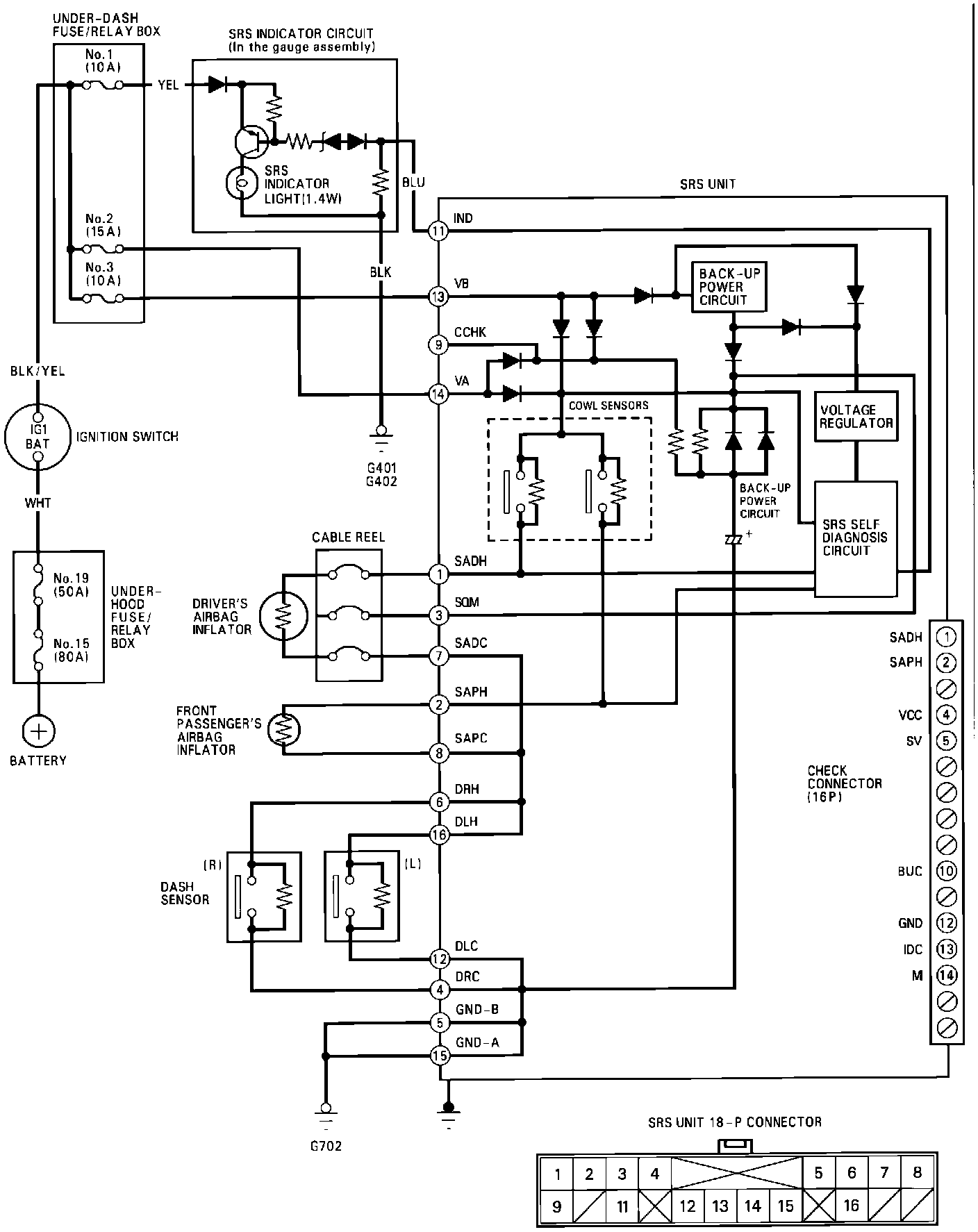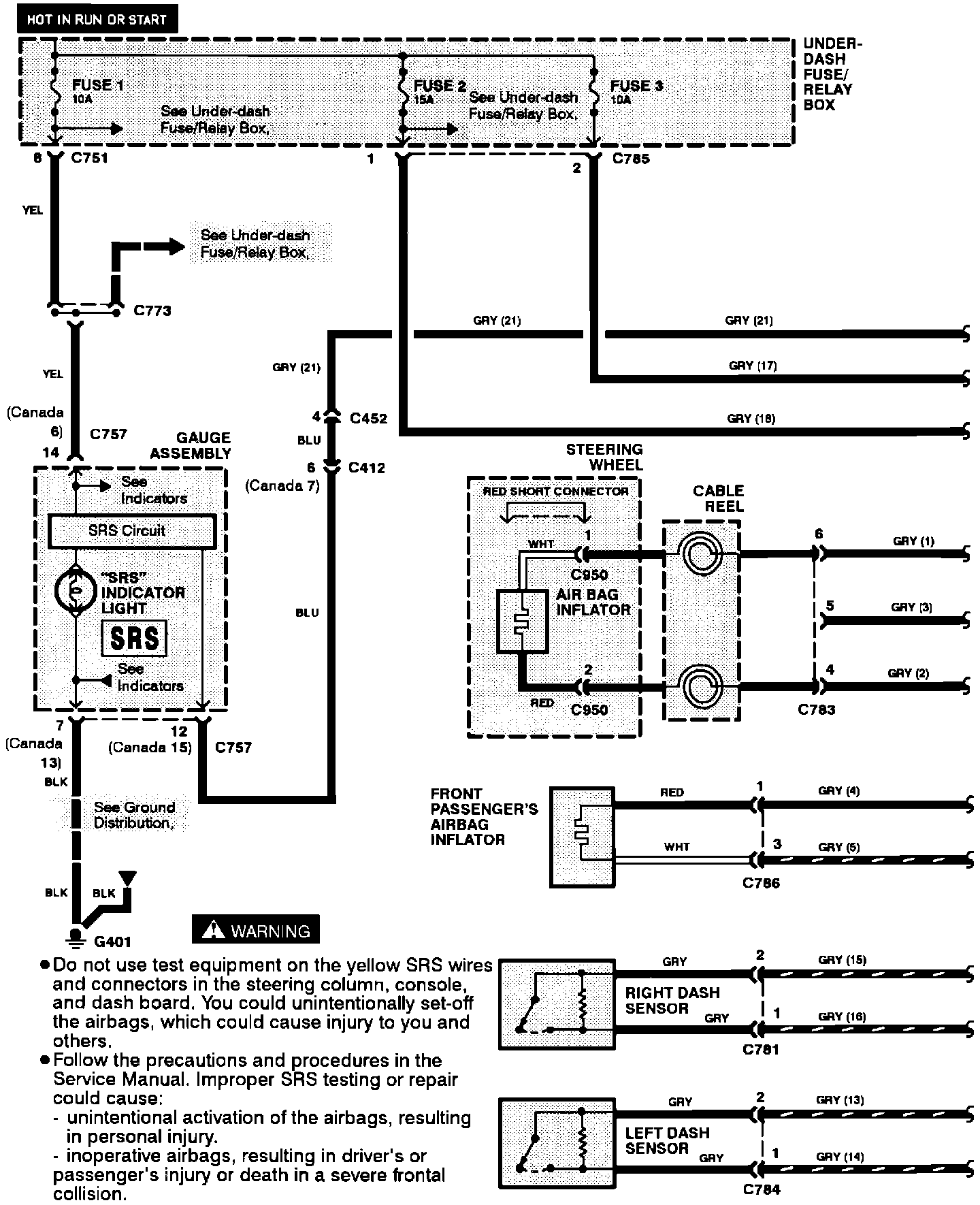 SRS Circuit Diagram (With Front Passenger Airbag):