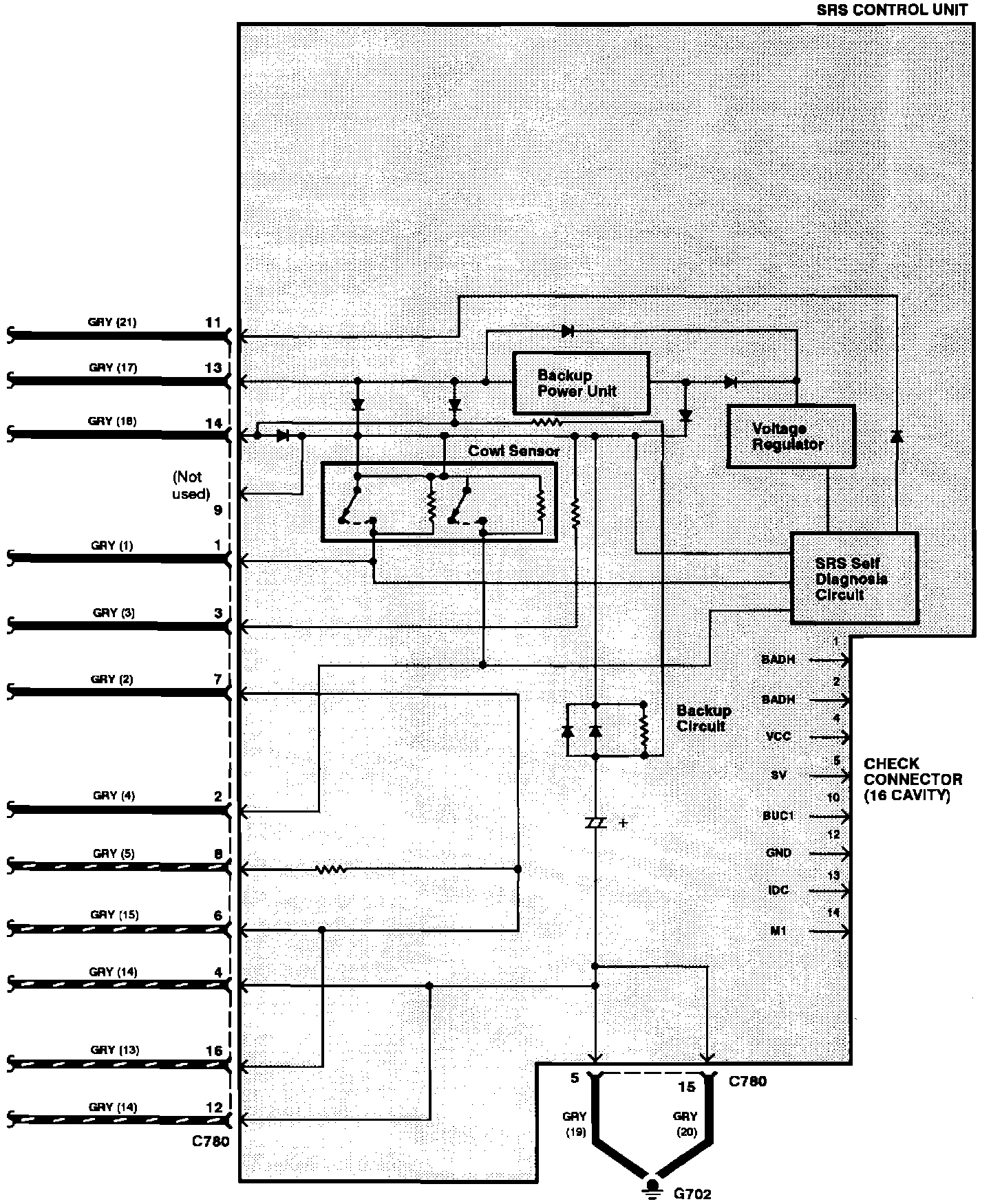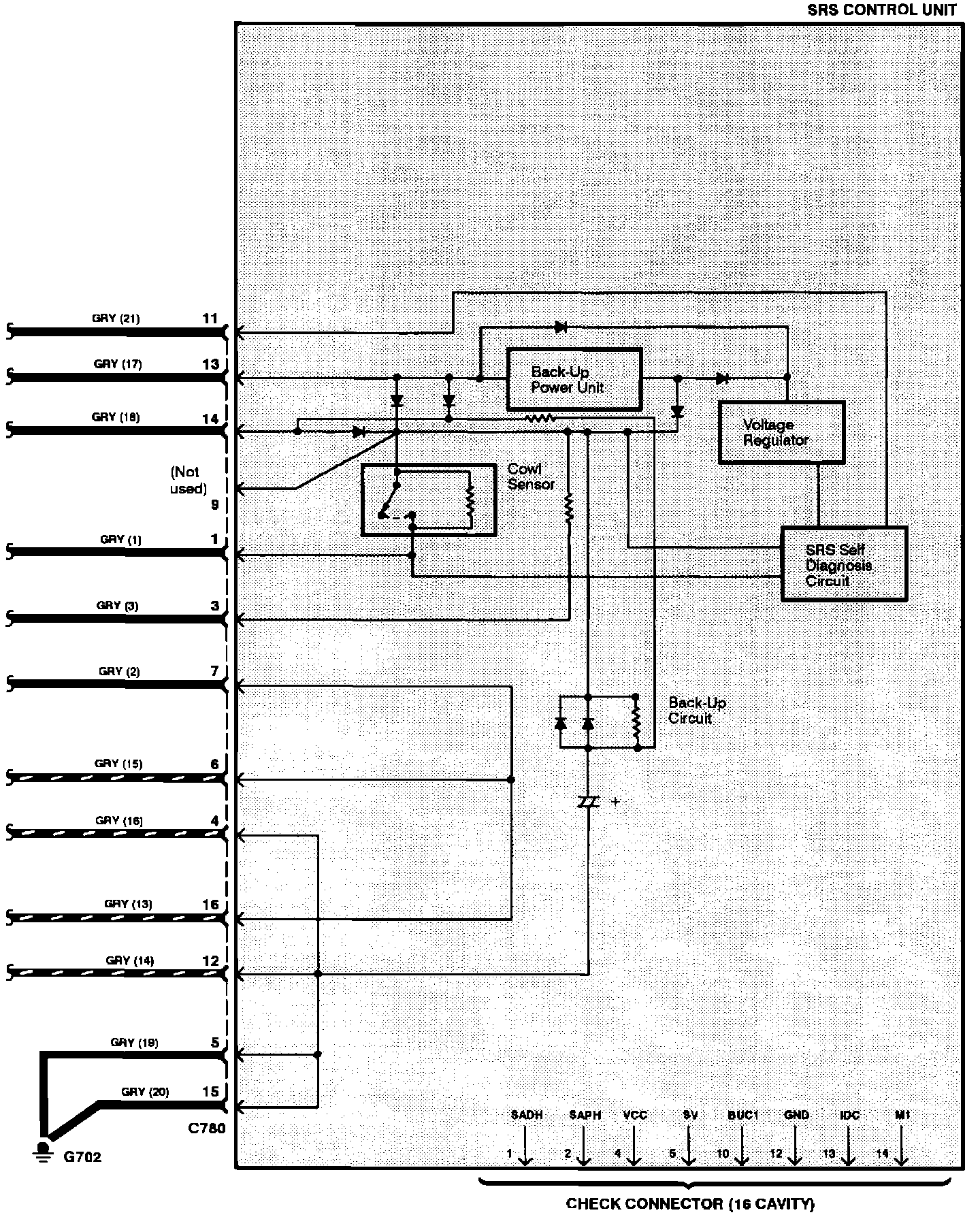 SRS Circuit Diagram (Without Front Passenger Airbag):