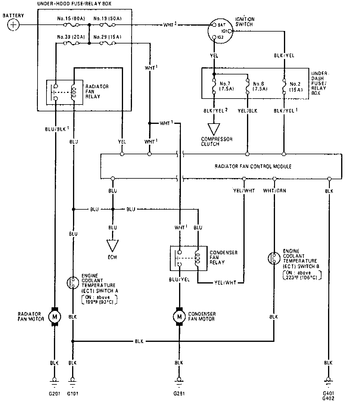 NOTE: Refer to Fig. 1 when diagnosing electric cooling fan system.