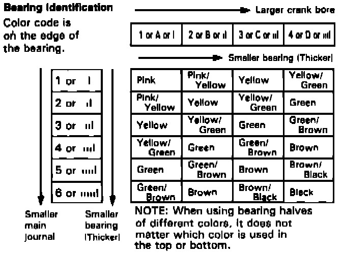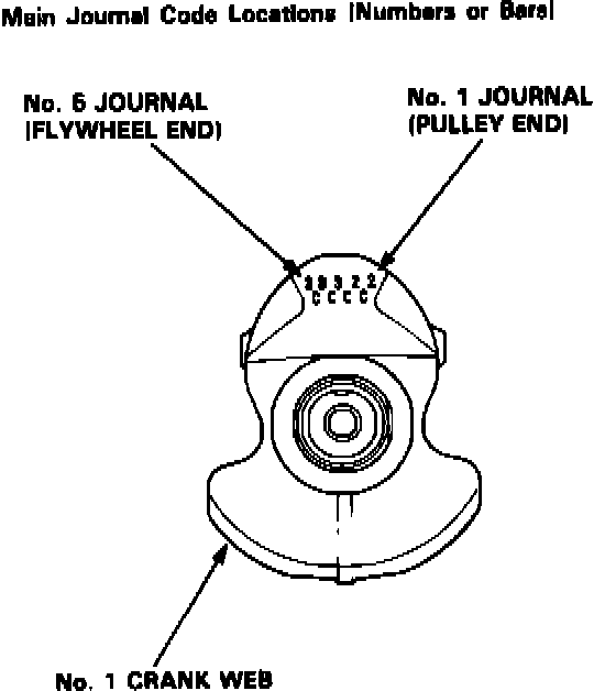 CAUTION: If the codes are indecipherable because of an accumulation of dirt and dust, do not scrub them with a wire brush or driver. Clean them only with washing oil or detergent.Crank Bore Code Location: