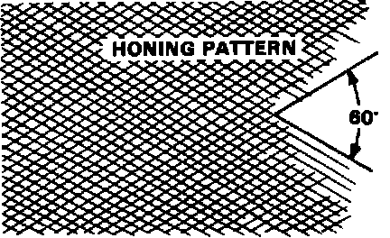 2. Hone cylinder bores with honing oil and a fine (400 grit) stone in a 60 degree cross-hatch pattern.