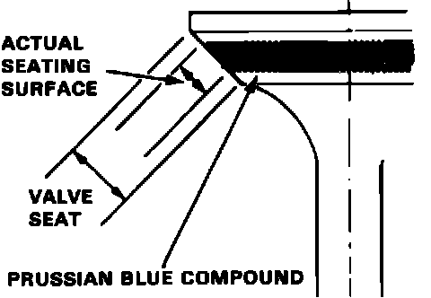 5. After resurfacing the seat, inspect for even valve seating: Apply Prussian Blue compound to the valve face, and insert valve in original location in the head, then lift it and snap it closed against the seat several times.