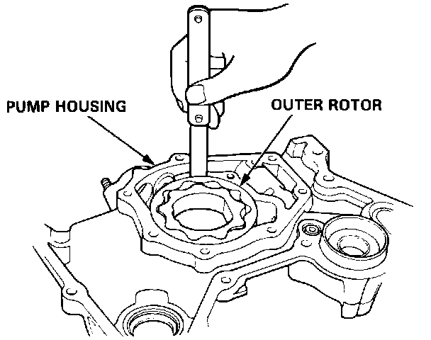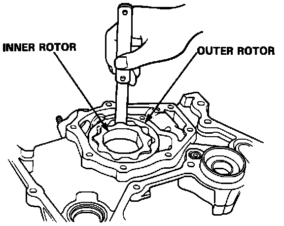 1. Check the inner-to-outer rotor radial clearance on the pump rotor.