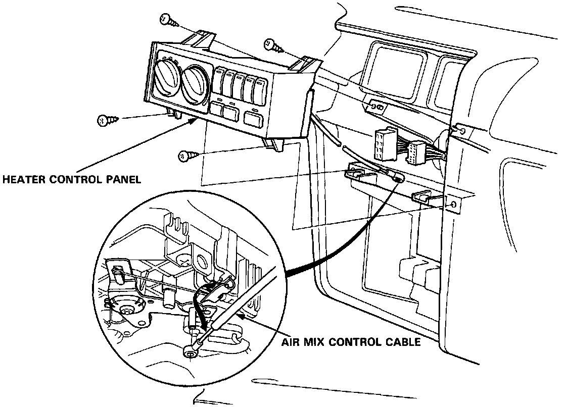5. Remove the four self-tapping screws, pull out the heater control panel, disconnect the wire harness connectors, then remove the heater control panel.