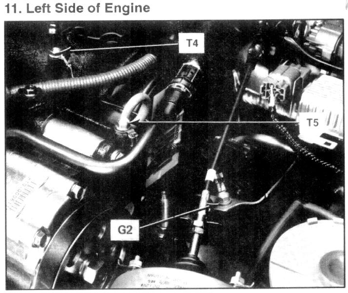 Left side of engine compartment, on motor mount bracket