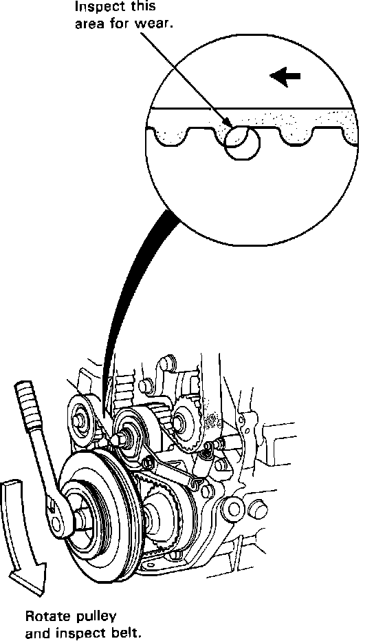 7. Inspect the timing belt for cracks and oil soaking.