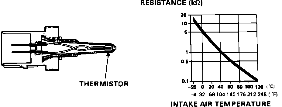 Thermistor resistance decreases as the air intake temperature increases.