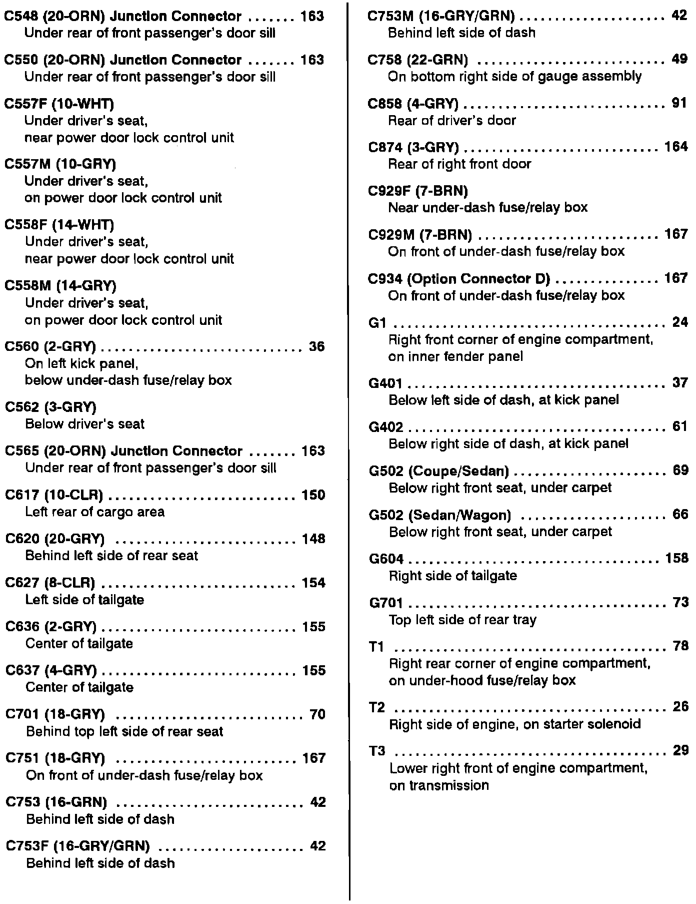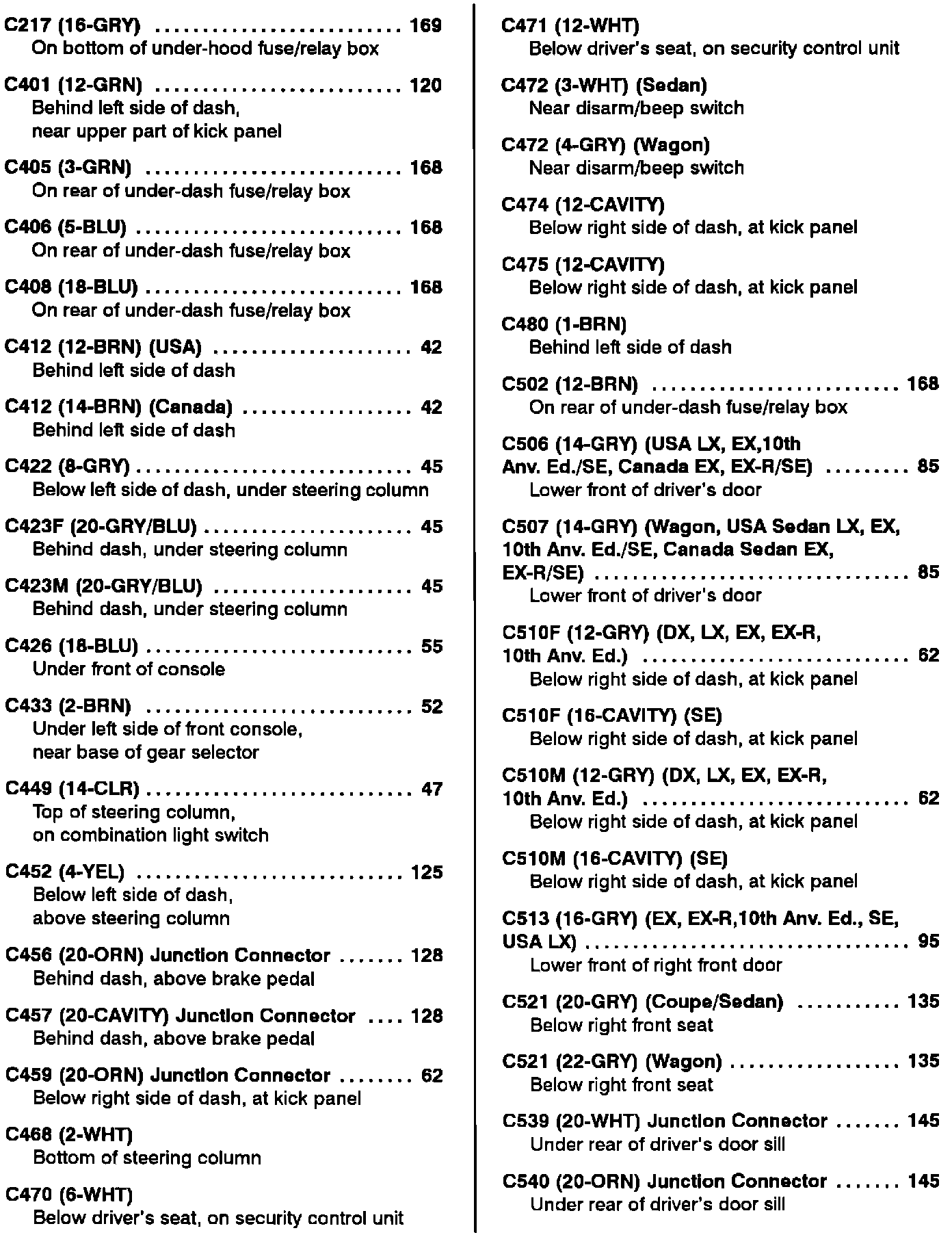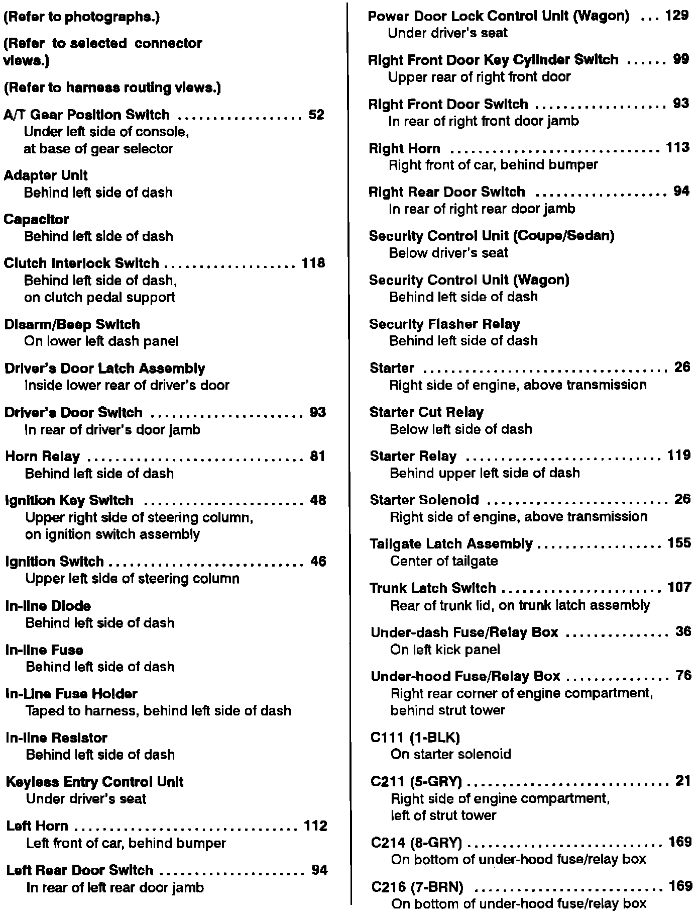 Component Location Index