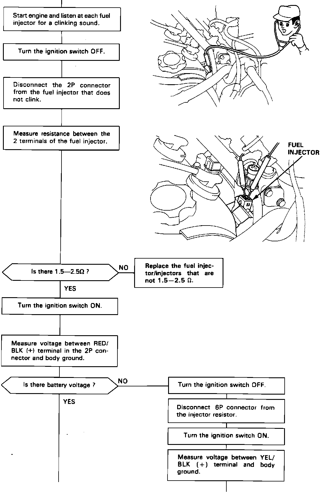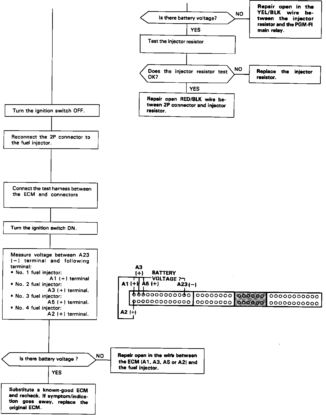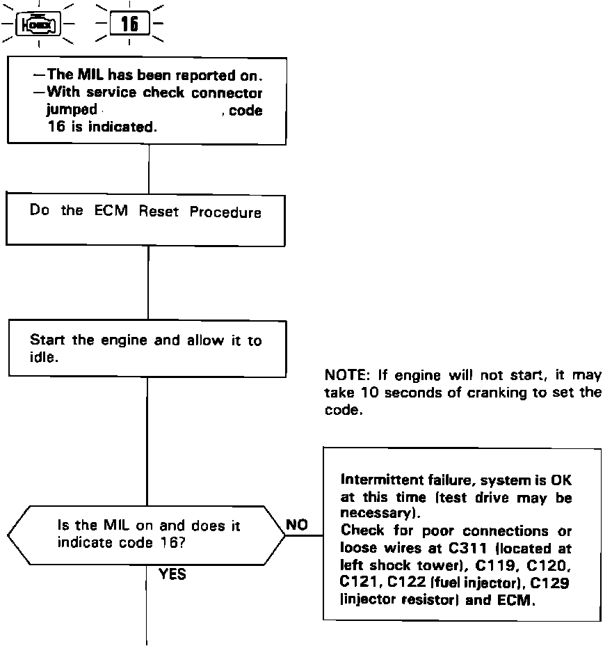 Code 16 is indicated, follow flow chart for diagnosis of fuel injectors and wiring harness.