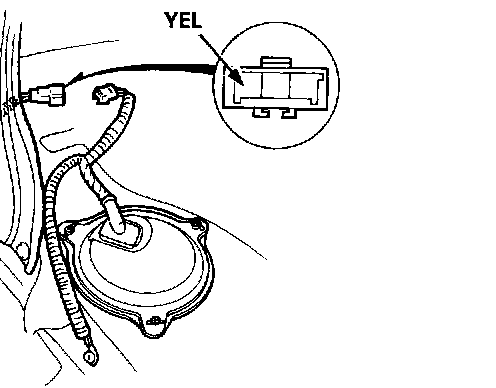 5. Check that battery voltage is available at the fuel pump connector when the ignition switch is turned ON (positive probe to the YEL wire negative probe to the body ground).