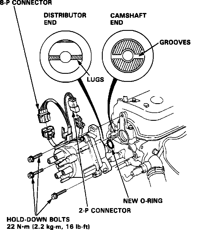 1. Disconnect the 2-P and 8-P connectors from the distributor.