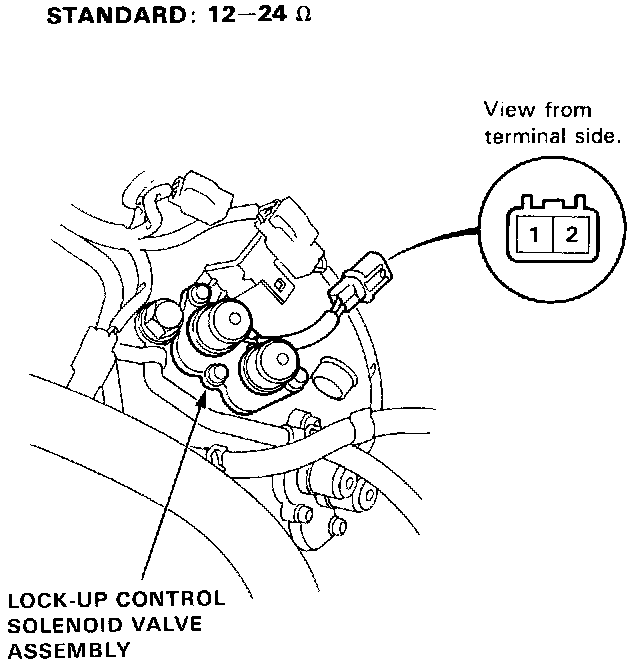 3. Replace the lock-up control solenoid valve assembly if the resistance is out of specification.