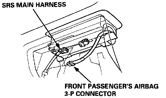 4. Remove the glove box, then disconnect the 3-P connector between the front passenger's airbag and SRS main harness.