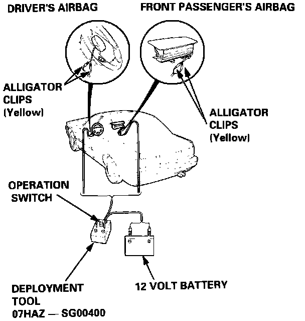 NOTE:Before scrapping any airbag(s) (including those in a whole car to be scrapped), the airbag(s) must be deployed. Before you deploy the airbag(s), check to see if the car is still within the warranty period. If it is, contact the Honda District Service Manager for approval and special instructions.