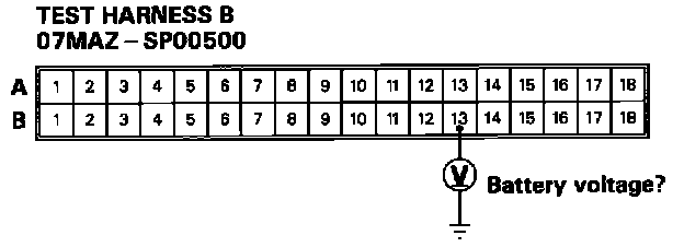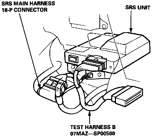 3. Connect Test Harness B (07MAZ - SP00500) between the SRS unit and the SRS main harness 18-P connector.