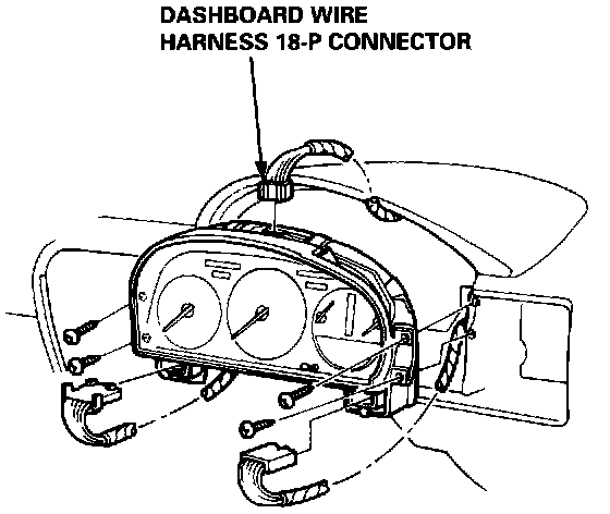 8. Reconnect the SRS main harness 4-P connector to the main wire harness. Disconnect the dashboard wire harness 18-P connector from the gauge assembly.