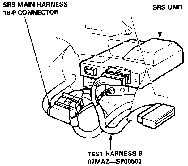 2. Connect Test Harness B between the SRS unit and SRS main harness 18-P connector.