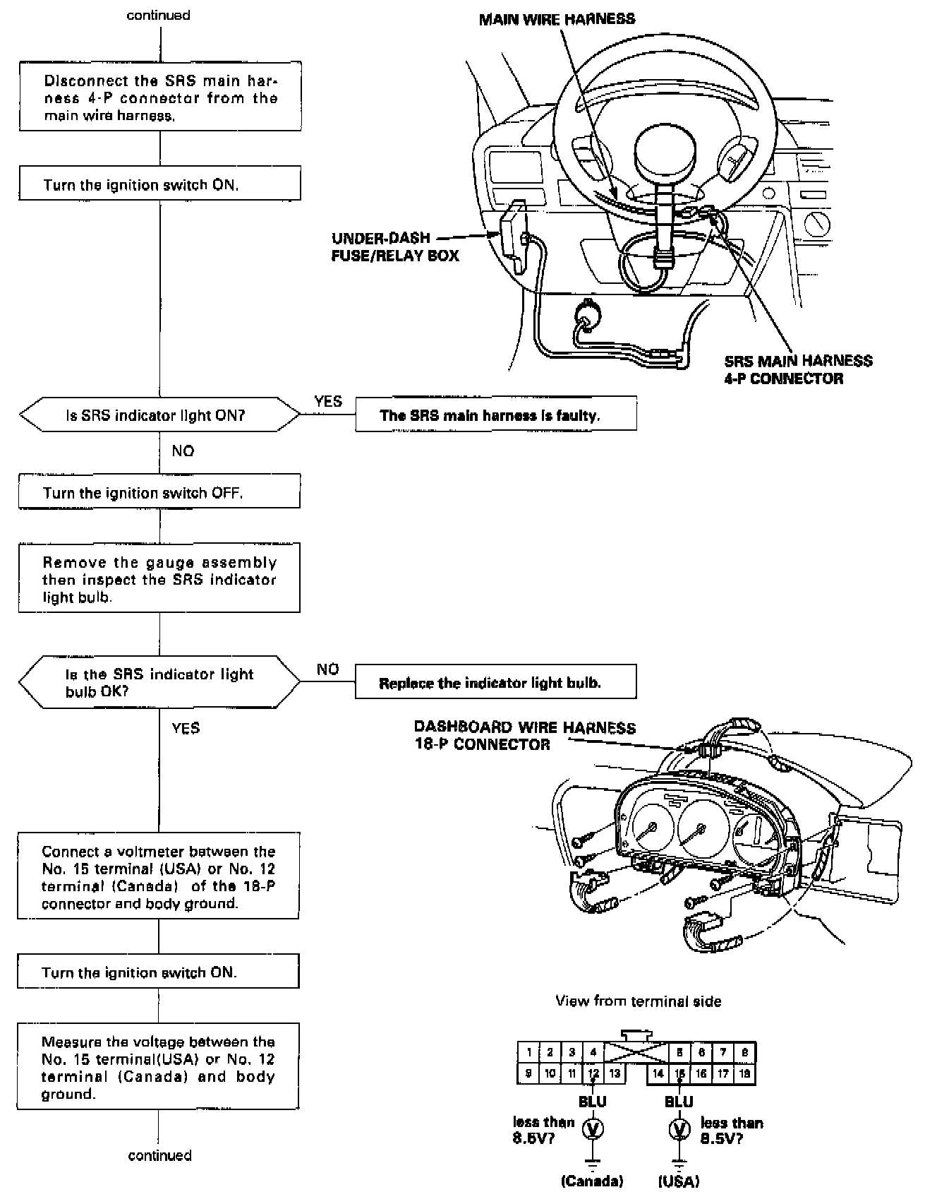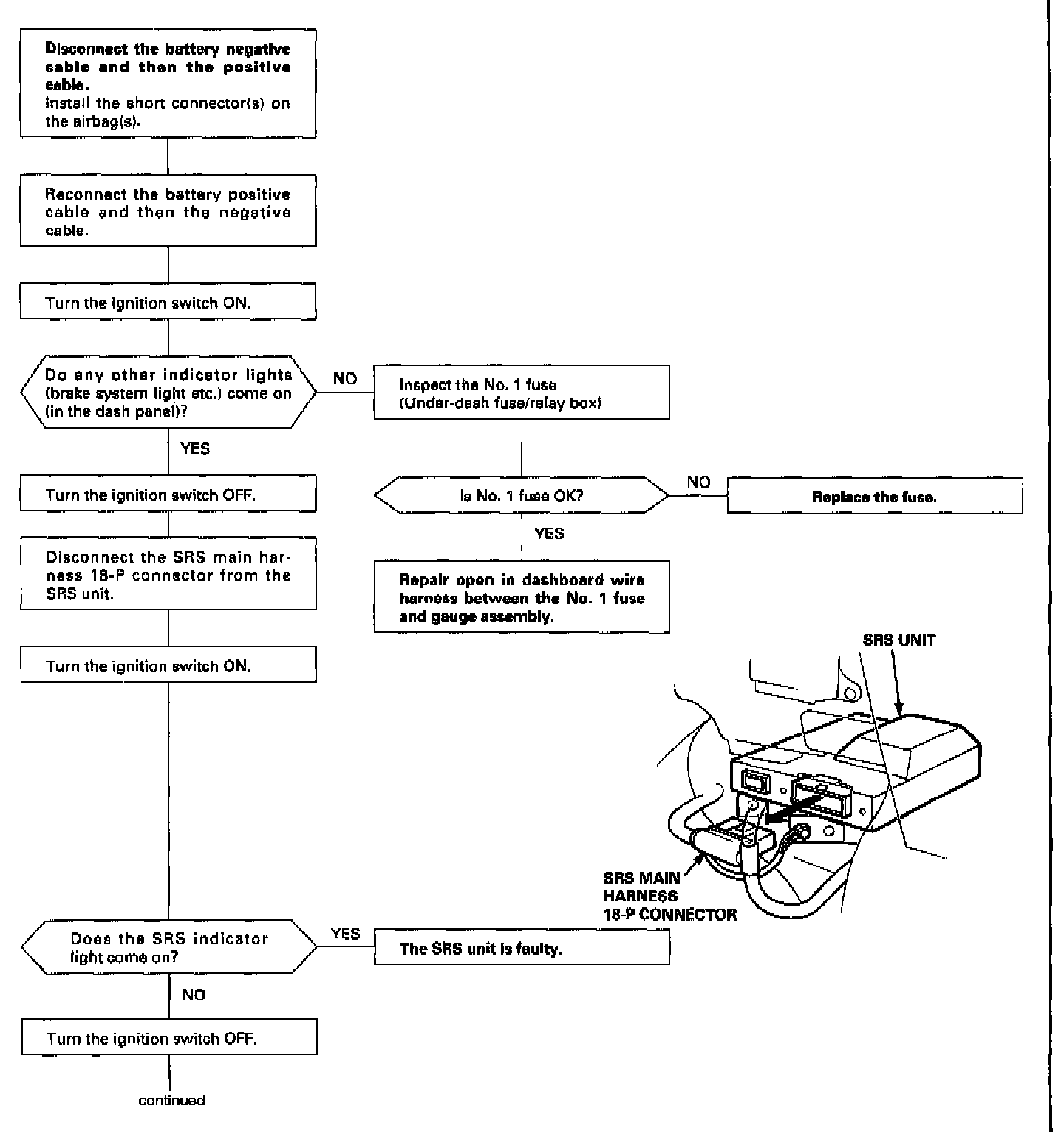 THE SRS WARNING LIGHT, DOES NOT COME "ON".