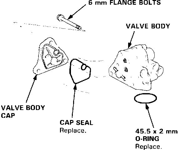 2. Remove the three 6 mm flange bolts, and remove the valve body cap from the valve body.