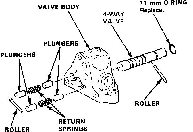 11. Remove the plungers, return springs and 4-way valve from the valve body.