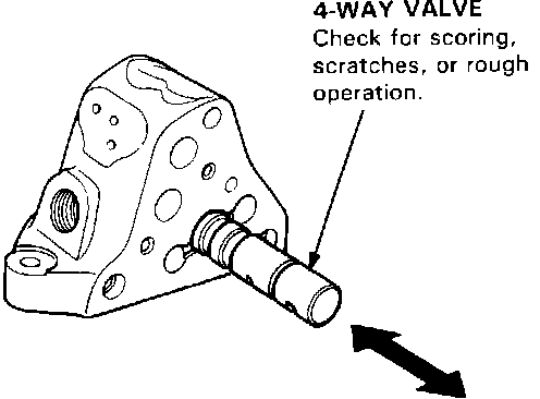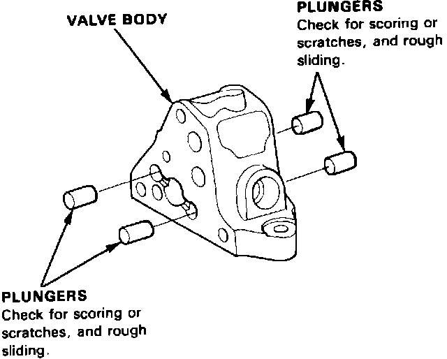 ^ Slip each plunger into the valve body, and make sure it slides smoothly, without drag or side play. If any plunger is damaged, replace it.