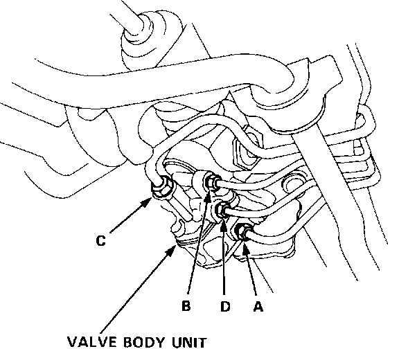 5. Using flare nut wrenches, disconnect the four lines from the valve body unit.
