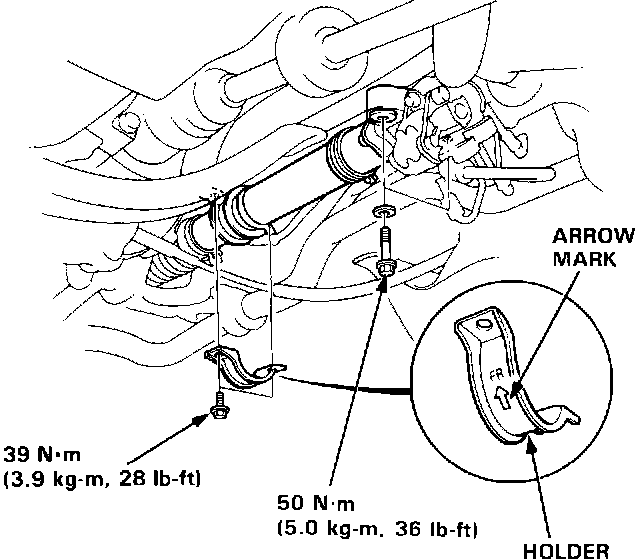 5. Install the holder with arrow mark facing forward and tighten the gearbox mounting bolts.