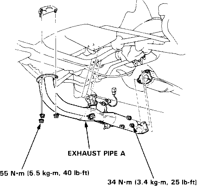 7. Install the exhaust pipe A with a new gasket, then tighten the new self-locking nuts and bolts.