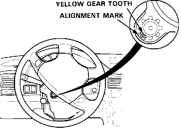 ^ If the cable reel is centered, the yellow gear tooth lines up with the alignment mark on the cover.