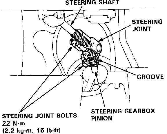 ^ Be sure that the lower steering Joint bolt is securely in the groove on the steering gearbox pinion.