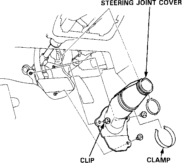 15. Install the steering joint cover with the clamps and clips.