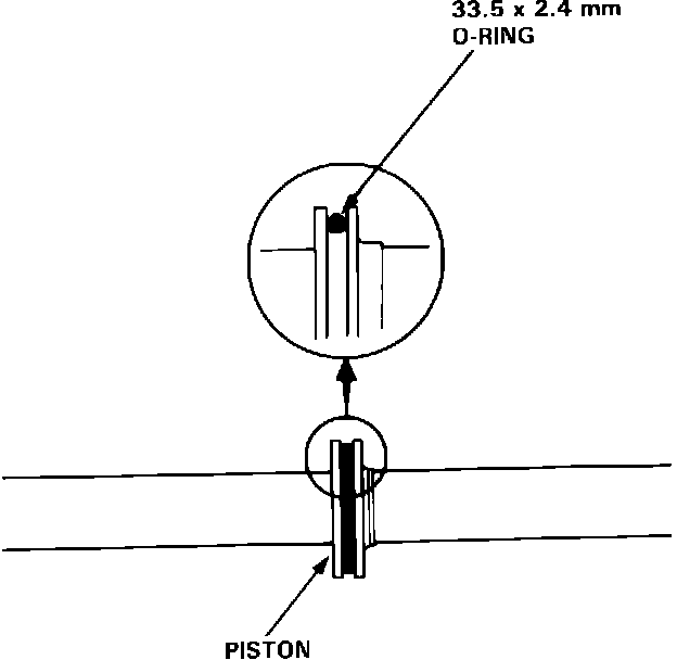 1. Install a new O-ring on the piston with its narrow edge facing out.