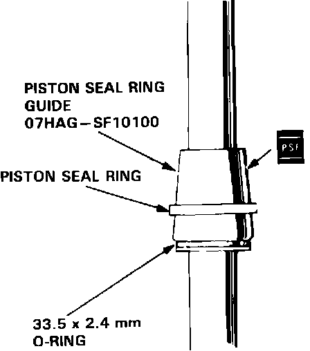 3. Position the new piston seal ring on the special tool, slide it down onto the big end of the tool, then pull it off into the piston groove on top of the 0- ring.
