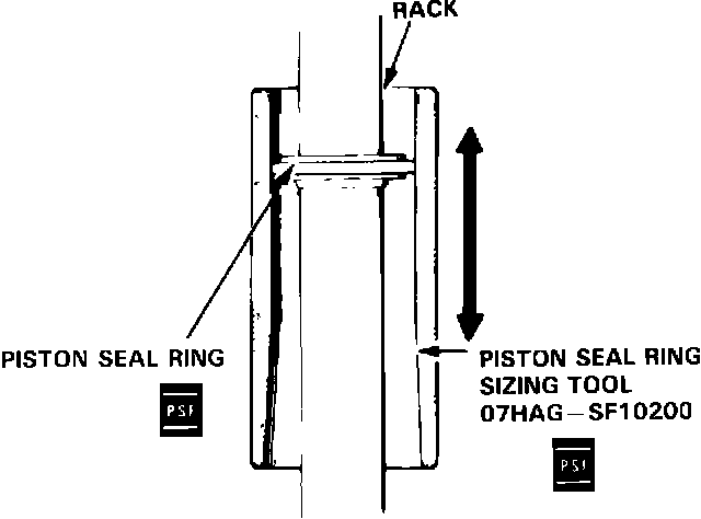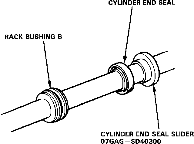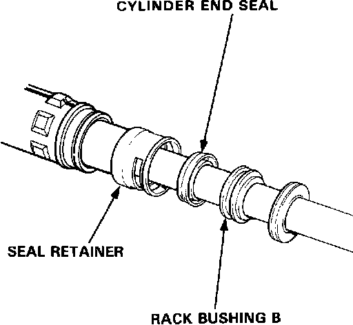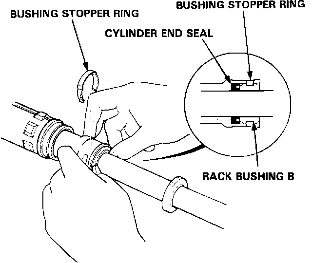 13. Push the rack bushing B toward the seal retainer by hand until the cylinder end seal is seated in the retainer. Fit the bushing stopper ring in the groove of the seal retainer securely.