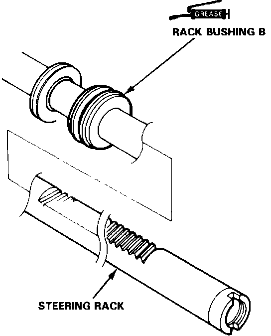 8. Grease the sliding surface of the rack bushing B, and install the bushing on the steering rack.