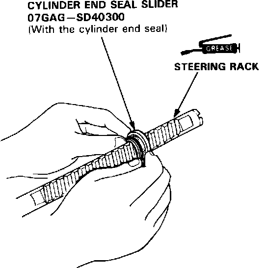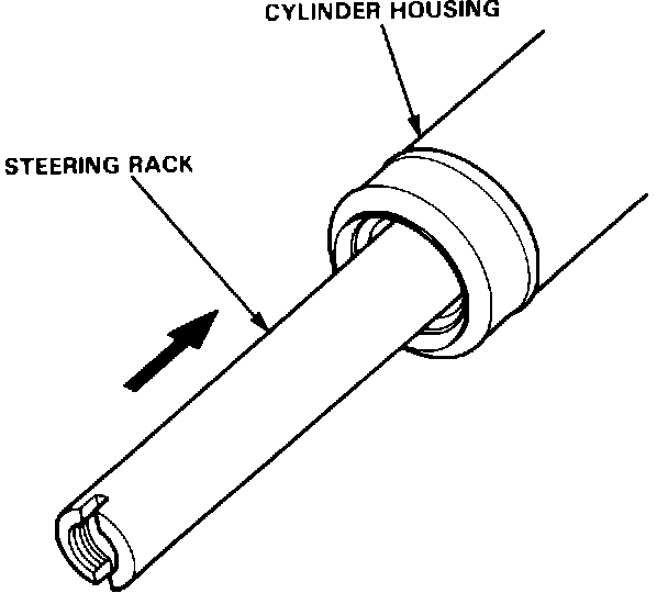 16. Coat the inside surface of the cylinder with power steering fluid, slide it over the rack and info the gear housing; press it into the housing until it seats.