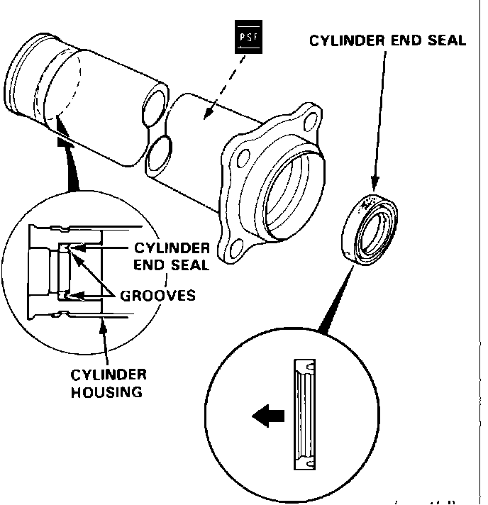 19. Coat the inside surface of the cylinder with power steering fluid and install the cylinder end seal with its grooved side facing out.