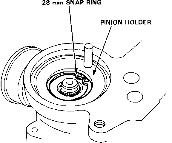 26. Install the 28 mm snap ring securely in the pinion holder groove.