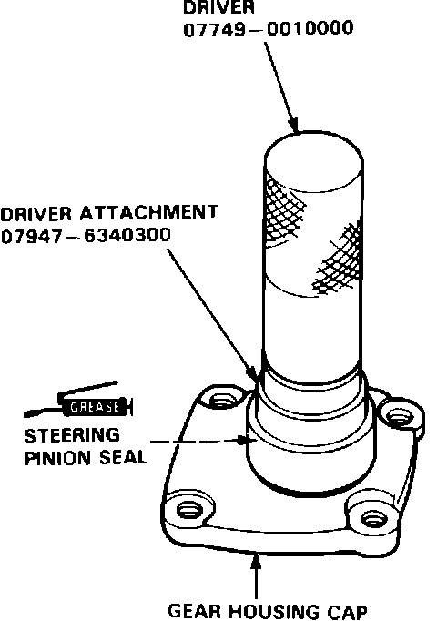 27. Grease the steering pinion seal, and install it on the gear housing cap using the special tools.