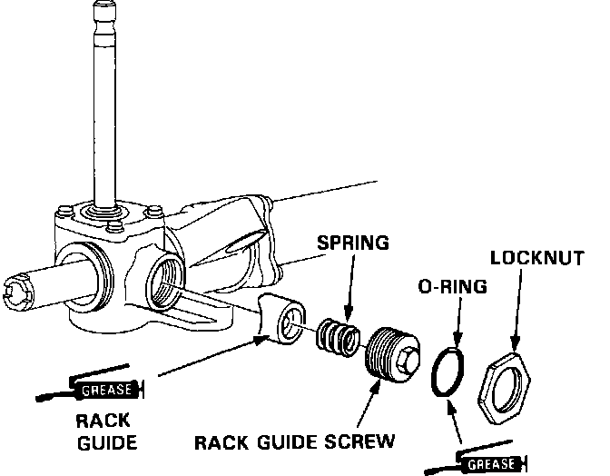 35. Install the rack guide, spring and rack guide screw on the gear housing.