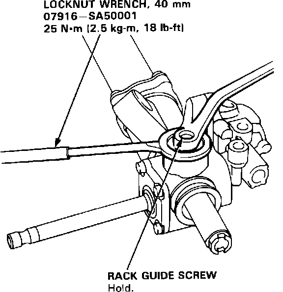 39. Tighten the locknut while holding the rack guide screw with the special tool.