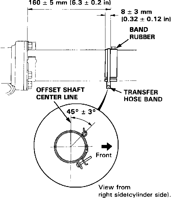 41. Install the band rubber and transfer hose band; position the band as shown and tighten it.