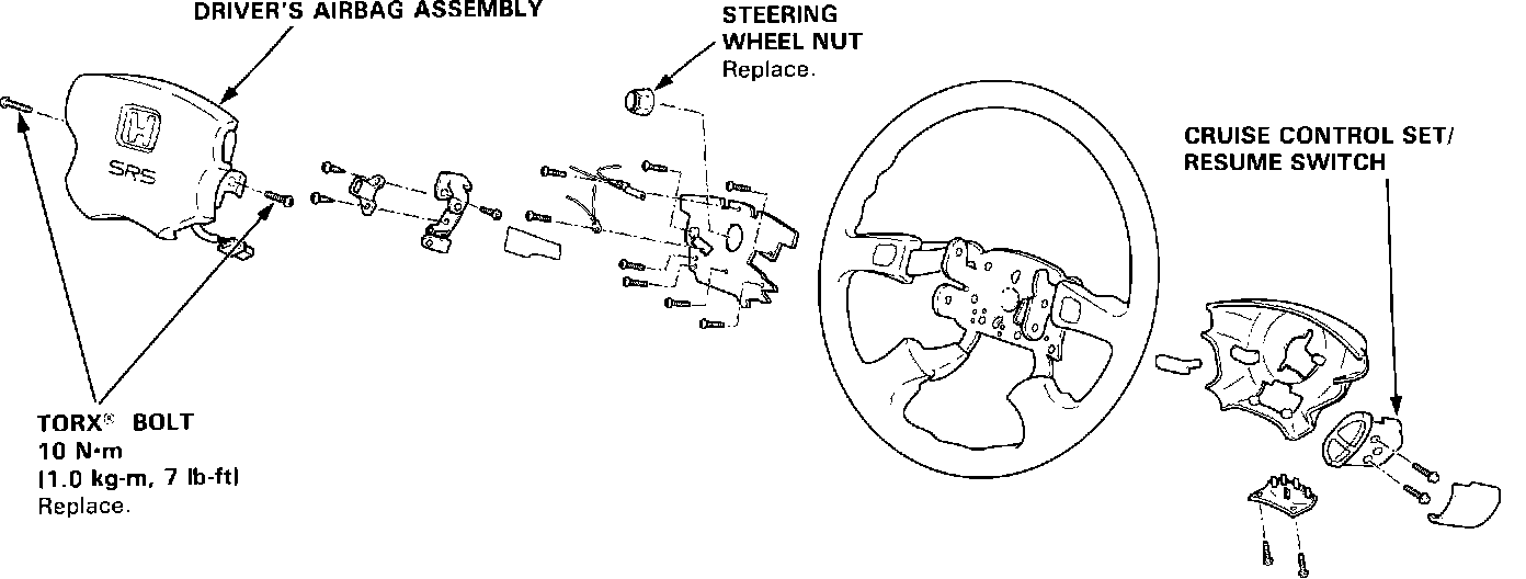 ^ Do not disassemble or tamper with the driver's airbag assembly.