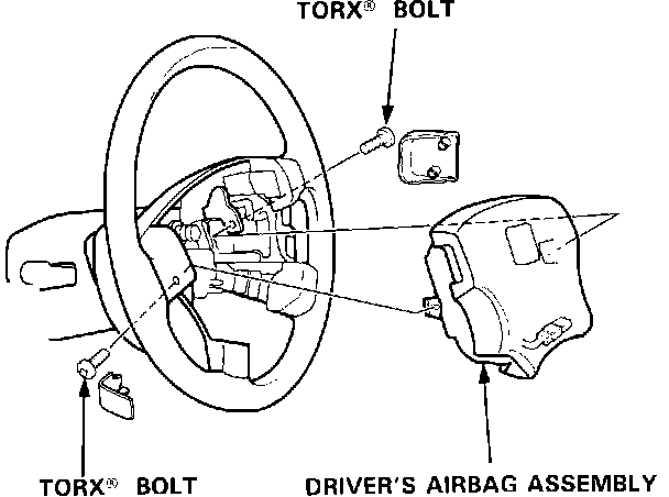 WARNING! Store a removed driver's airbag assembly with the pad surface up. If the airbag is improperly stored face down, accidental deployment could propel the unit with enough force to cause serious injury.CAUTION: