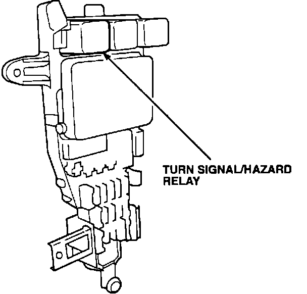 1. Remove the turn signal/hazard relay from the under-dash fuse box by inserting a small screwdriver underthe holding tab on each side of the relay. Pull the relay straight out.