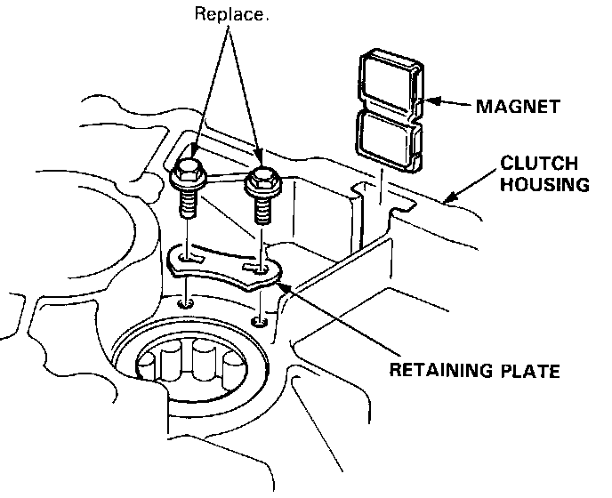 1. Remove the differential assembly.2. Remove the retaining plate from the clutch housing. Remove the magnet.