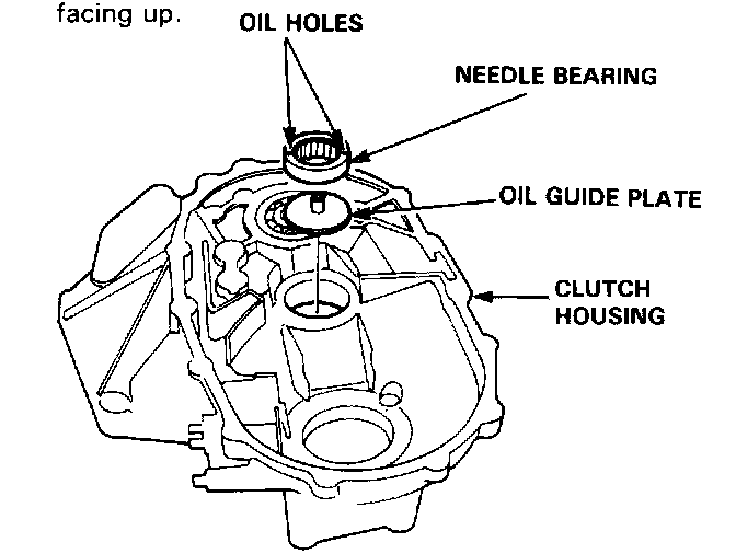 4. Position the oil guide plate and new needle bearing in the bore of the clutch housing.