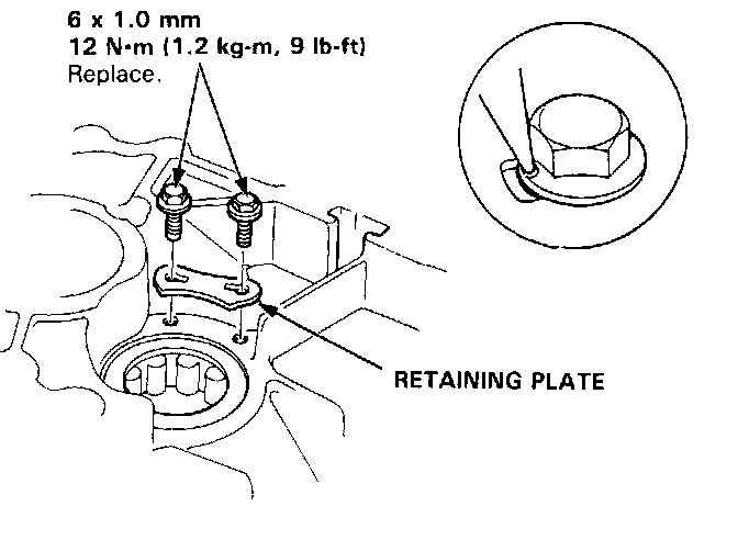 6. Install the retaining plate and stake the bolt heads in the groove in the retaining plate.